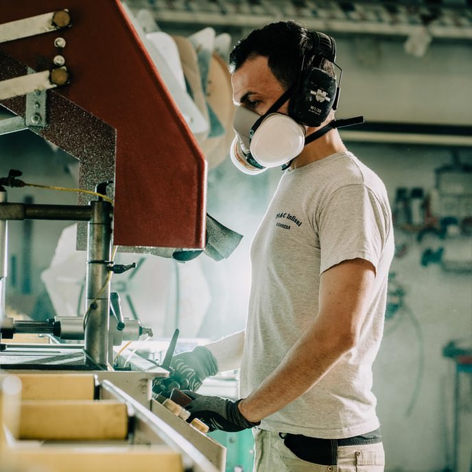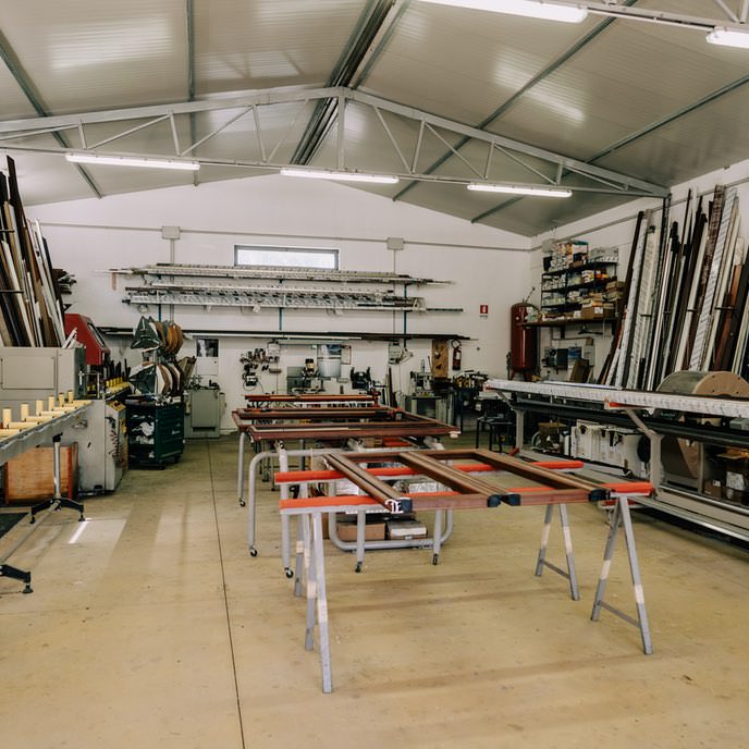 Ogni singolo prodotto nasce nel nostro laboratorio di Gonnesa, uno spazio di 200 metri quadri attrezzato per lavorare l’alluminio e assemblare le parti in legno e vetro di ogni prodotto.
